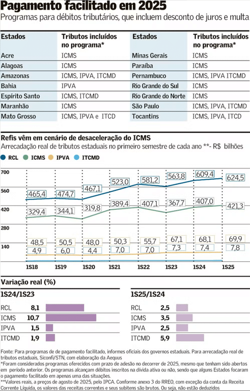 Para especialistas e representantes dos Estados, os programas, além de beneficiar contribuintes que buscam regularização, ajudam na arrecadação num momento em que há receio de desaceleração da economia e são naturalmente esperados, tendo em vista as eleições em 2026.